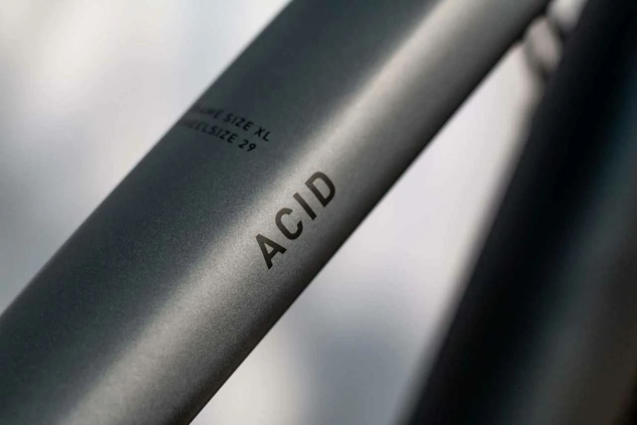 Der Acid Frame besticht durch seine ultra-cleane Optik. Dabei handelt es sich um eine durch einen glatten Schweißprozess hergestellte Verbindung zwischen Steuerrohr und Sattelstützenprofil. Es wurde auch für ein angeschraubtes Tretlager verbaut und die Kabel nach innen verlegt, damit sie länger funktionieren und einfacher zu reparieren sind. Die Flat Mount-Scheibenbremsaufnahme, die sich nahtlos in die Seitenständerhalterung integriert darf auch nicht fehlen. Außerdem sind Befestigungspunkte für ACID-Schutzbleche und Gepäckträger vorhanden. Die überarbeitete Geometrie hat ein niedrigeres Oberrohr und ein konifiziertes Steuerrohr für ein sichereres Handling. Es gibt auch viel Platz für 2,1-Zoll-Reifen, die breit und griffig sind und bequem rollen. Zudem wurde das SizeSplit-System weiter ausgebaut. So findest du garantiert die perfekte Kombination aus Acid-Laufrädern und Rahmengröße. Das Fahrgestell kann auch mit einer versenkbaren Sattelstütze ausgestattet werden, da die Anforderungen mit zunehmendem Fahrkönnen steigen.
