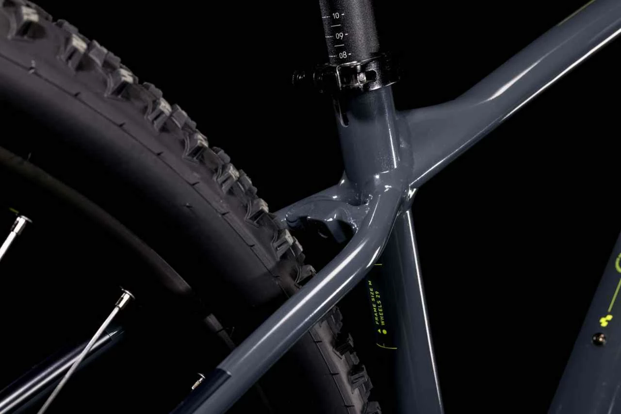 Der brandneue Aim Rahmen besticht 2022 mit einem überarbeiteten, supercleanen Look. Verantwortlich dafür: die im Smooth Welding Verfahren hergestellten Verbindungen am Steuerrohr und Sattelstützenprofil. Außerdem haben wir ihm ein geschraubtes Tretlager gegeben und die Züge ins Innere verlegt, damit sie ihre Aufgabe lange machen und leicht gewartet werden können. Es gibt sogar eine Aufnahme für eine Flat-Mount-Scheibenbremse, die nahtlos in die Seitenständeraufnahme integriert ist. Montagepunkte für ACID Schutzbleche und Gepäckträger sind auch mit dabei. Die überarbeitete Geometrie hat ein niedrigeres Oberrohr für noch zuverlässigeres Handling und lässt viel Platz für breite, griffige, komfortabel rollende 2.25 Zoll Reifen. Auch haben wir unser SizeSplit System jetzt breiter aufgestellt – dadurch findet jeder und jede die perfekt passende Aim Rahmengröße für sich.
