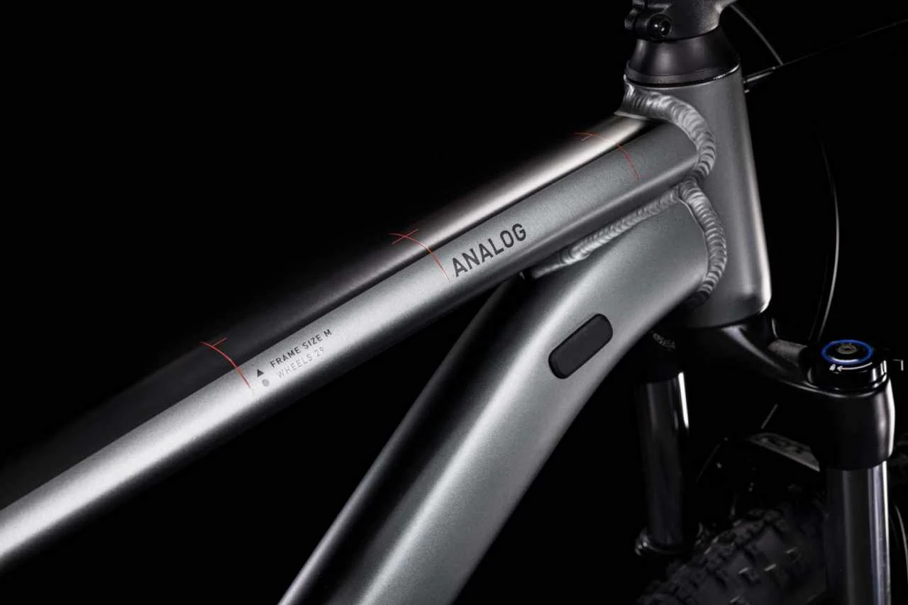 Der brandneue Analog Rahmen besticht 2022 mit einem überarbeiteten, supercleanen Look. Verantwortlich dafür: das im Smooth Welding Verfahren hergestellte Steuerrohr und Sattelstützenprofil. Außerdem haben wir ihm ein geschraubtes Tretlager gegeben und die Züge ins Innere verlegt, damit sie ihre Aufgabe lange machen und leicht gewartet werden können. Es gibt sogar eine Aufnahme für eine Flat-Mount-Scheibenbremse, die nahtlos in die Seitenständeraufnahme integriert ist. Montagepunkte für ACID Schutzbleche und Gepäckträger sind auch mit dabei. Die überarbeitete Geometrie hat ein niedrigeres Oberrohr und konifiziertes Steuerrohr für noch zuverlässigeres Handling. Die Kabelzüge verlaufen im Inneren, was die Wartung erleichtert. Außerdem bleibt viel Platz für breite, griffige und komfortabel rollende 2.25 Zoll Reifen. Wir haben unserem SizeSplit System übrigens weitere Größenoptionen hinzugefügt – dadurch findet jeder und jede die perfekt passende Analog Rahmengröße für sich. Und da mit wachsendem Fahrkönnen auch die Ansprüche steigen, kann der Rahmen mit einer versenkbaren Sattelstütze ausgestattet werden.