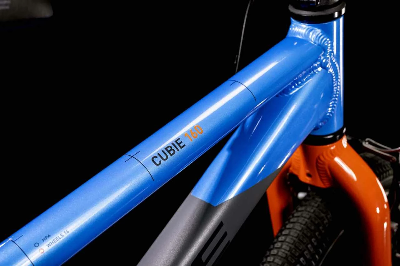 Das Cubie 160 präsentiert sich als gelungene Kombination aus Fahrspaß und reaktionsfreudigem Handling, gepaart mit hoher Stabilität, Lenkpräzision und Spurtreue. Wir haben die Ecken und Kanten des leichten Rahmens aus 6061er-Aluminium sicherheitshalber abgerundet, um das Verletzungsrisiko zu minimieren. Was aber keinerlei Einbußen in Sachen Robustheit bedeutet – selbst wilde Manöver steckt dieses Chassis locker weg. Mit einer leichten Aluminiumgabel konnten wir das Gesamtgewicht weiter reduzieren, zudem unterstützt sie das agile und zugleich sichere Handling des Cubie 160. Selbstverständlich gibt es das Modell in mehreren Farbstellungen, damit jeder kleine Biker das Cubie 160 findet, das seinen Vorlieben und Vorstellungen entspricht.
